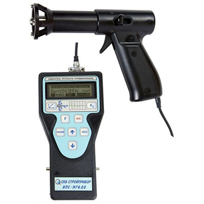 Измерители прочности бетона ИПС-МГ4.01, ИПС-МГ4.03, ИПС-МГ4.04 предназначены для определения прочности бетона методом ударного импульса по ГОСТ 22690, на основе предварительно установленной зависимости между прочностью бетона, определенной при испытании образцов в прессе и измеренным ускорением, возникающим при взаимодействии индентора измерителя с бетонным образцом, при постоянной энергии удара (Е=0,12 Дж).